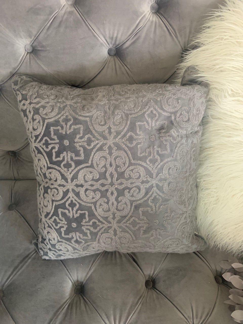 Gray Textured Velvet Pillow